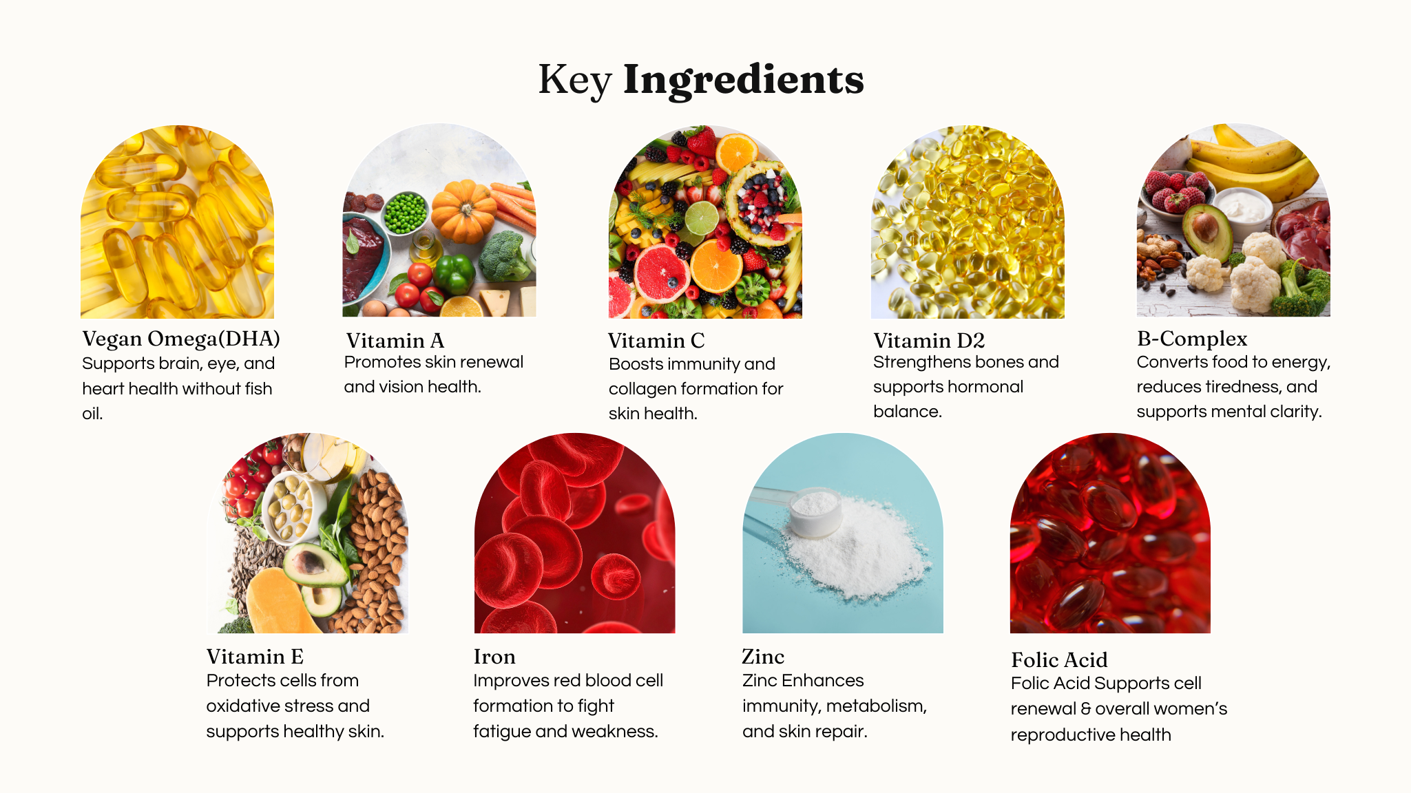 • Folic Acid & B-Complex Vitamins – support metabolism and daily energy
